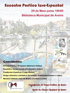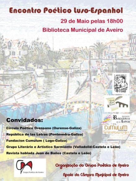 Integrado na Feira do Livro de Aveiro irá decorrer nos dias 29 e 30 de Maio o “Encontro Poético Luso-Espanhol”, organizado pelo Grupo Poético de Aveiro, com o apoio da Câmara Municipal de Aveiro.
